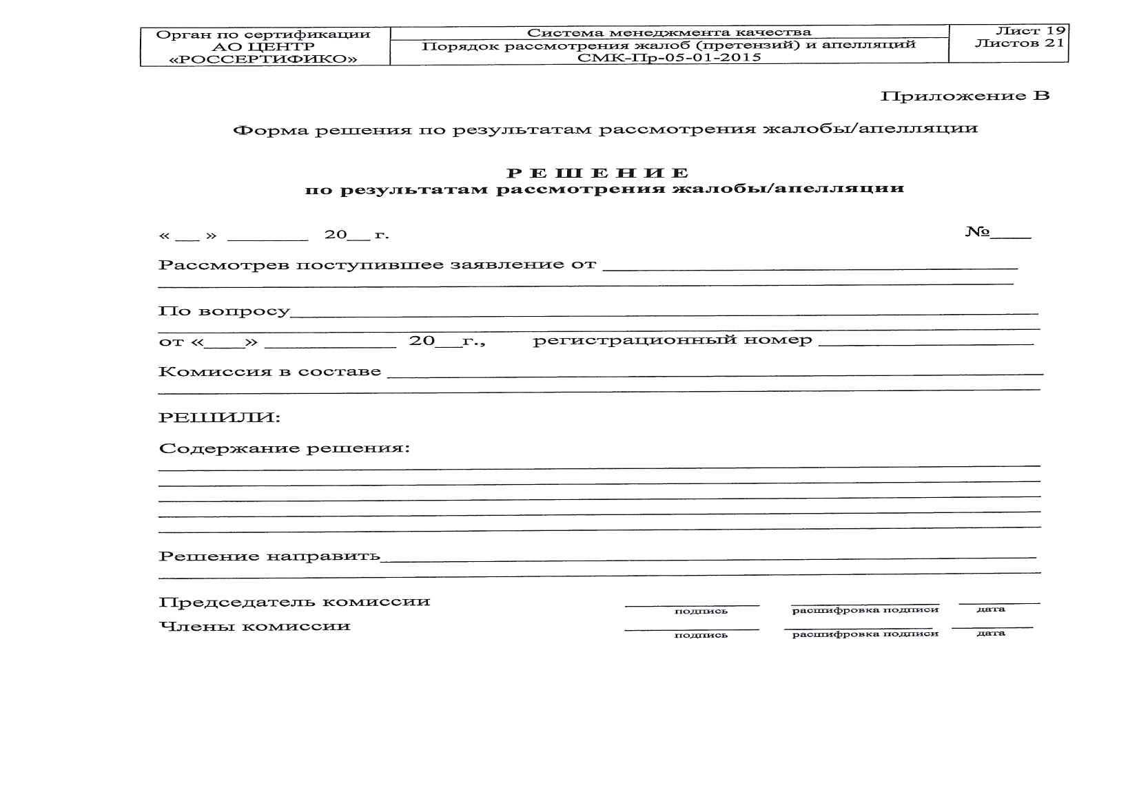 - Правила рассмотрения жалоб и апелляций на решения органа по сертификации